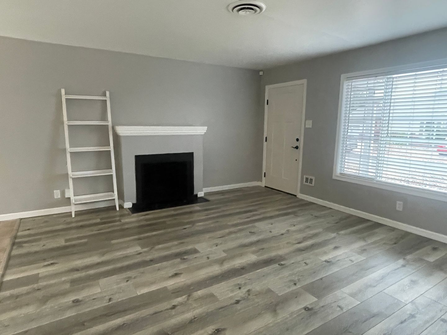 The interior features neutral paint tones, updated flooring throughout, and abundant natural light. The living and dining areas feel open and inviting, with a cozy fireplace as a focal point. Large windows and sliding glass doors connect the living space to the backyard, creating an easy transition for everyday living or entertaining.