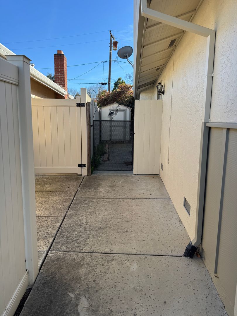 Spacious single story 2 bedroom/2 bath detached home located on a quiet cul de sac. Wood flooring. Carpeted family room with gas fireplace and built in cabinets. Updated kitchen. Ceiling fans. Central heat and air conditioning. Shady covered patio with ceiling fan. Storage shed for bikes, etc. Refrigerator, washer and dryer. Indoor laundry room. Owner pays City water, sewer, garbage and gardener. Convenient to the Nugget shopping center, Holmes Junior High School and public transportation.