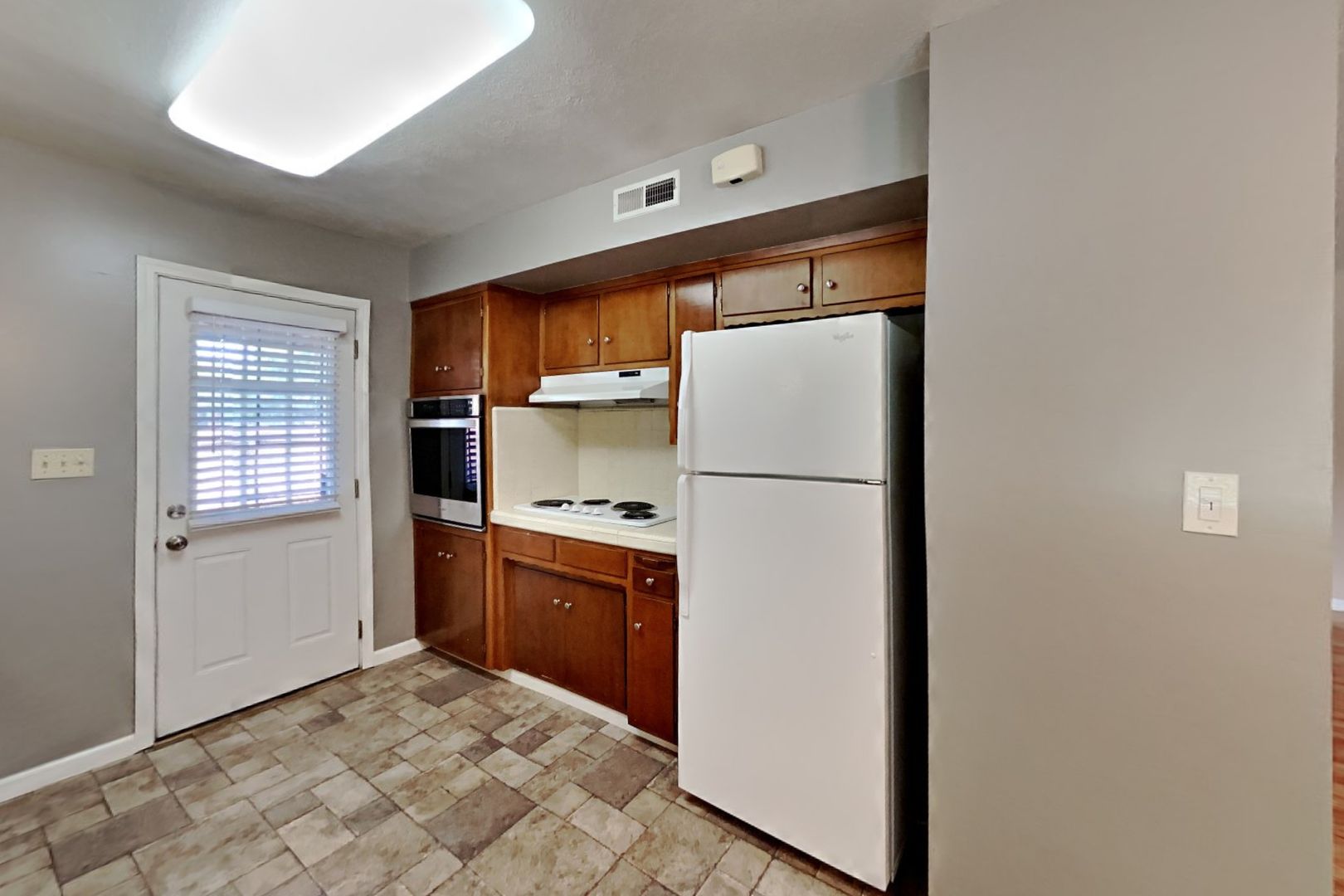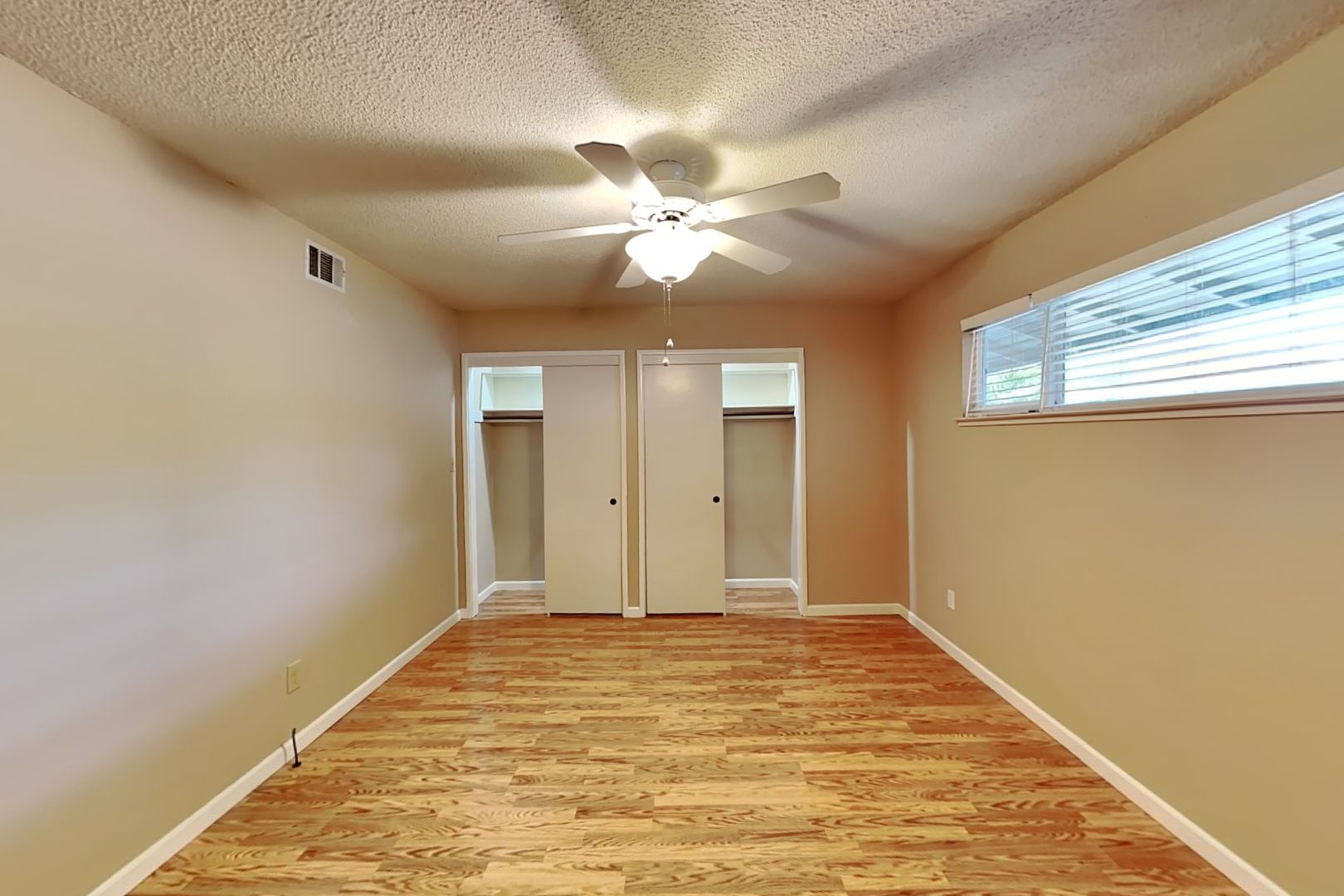 Inside the unit you will find laminate flooring, large windows, central heating and air, and ample storage space. Private, on-site laundry facilities are available in a closet in the yard. Please note, our fireplace is not functional and there is no garage with this unit.
